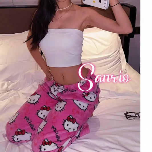 Hello Kitty Plush Pajama Pants – Cozy Cartoon Lounge Bottoms Unisex